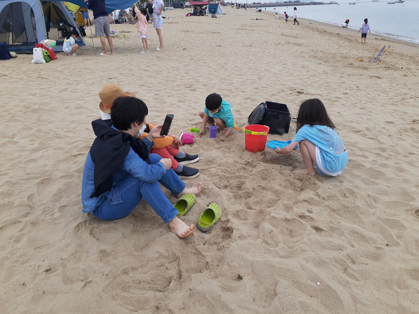 집에 가는 길에 왜목마을에서 아이들은 모래 놀이를 하고 갑니다.