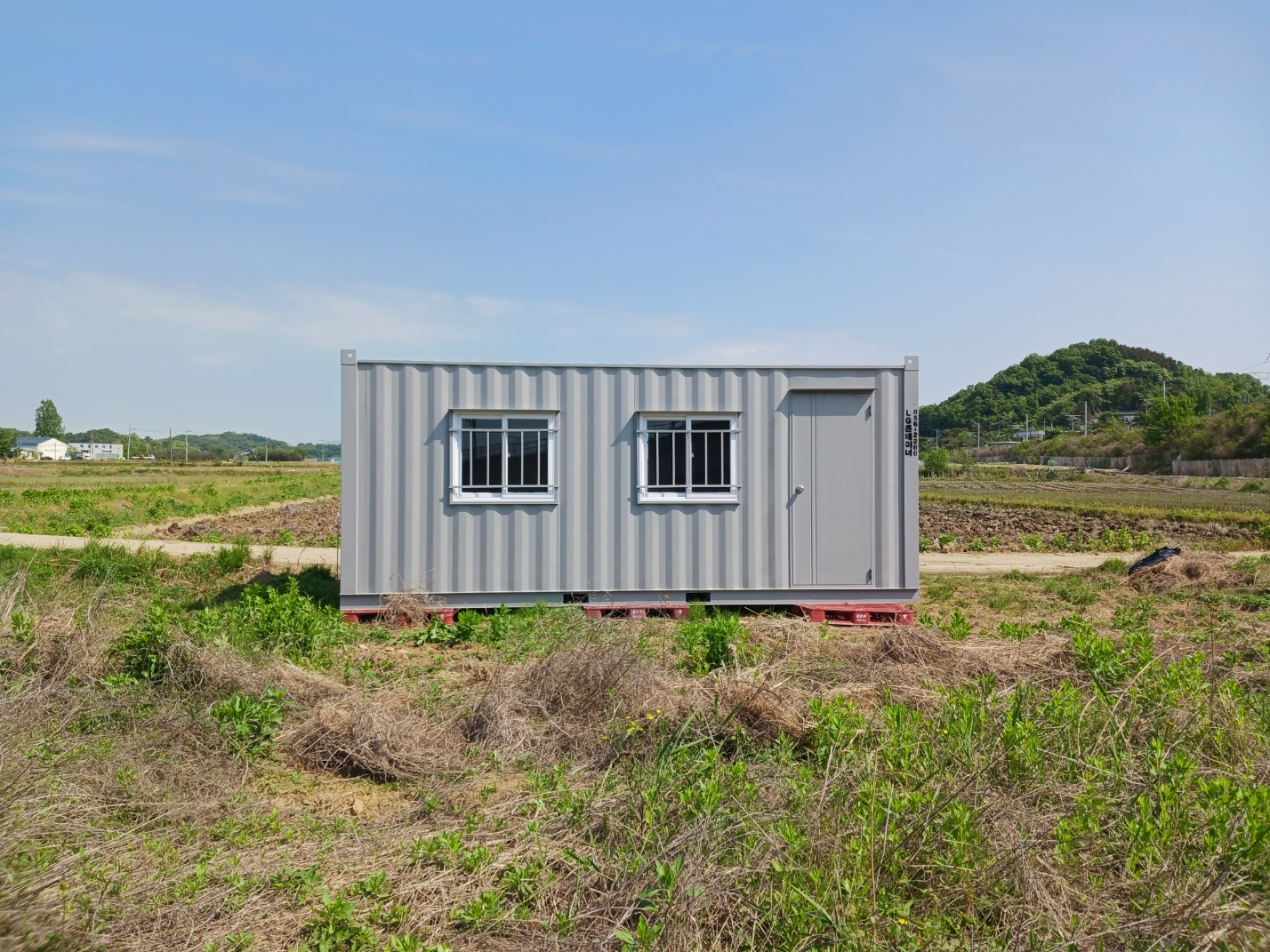 아무것도 없던 허허벌판에 36컨테이너가 위치하게 됩니다. 중고나 새거나 가격차이도 별로 나지 않고, 상하차비 운반비 고려하면 그냥 새것으로 사는 게 누수 걱정도 덜 하게 되고, 훨씬 좋은 거 같습니다. 바닥이 울퉁불퉁해서 고물상표 단단한 파렛트를 3만 원에 구매해서 총 5개 바닥에 깔고 컨테이너를 설치합니다.