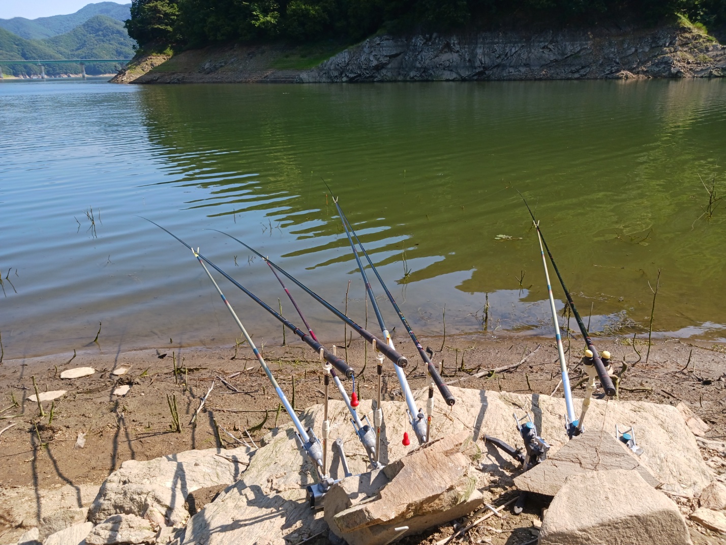 하늘의 구름도 간간히 지나가고 이렇게 대낚을 하고 있다 보면 시간이 금방 지나갑니다. 낚시를 안 좋아하시는 분들은 좀이 쑤셔서 못 있겠다 하시는데, 낚시하는 사람들은 쉴 틈이 없다는 것을 아실 겁니다.