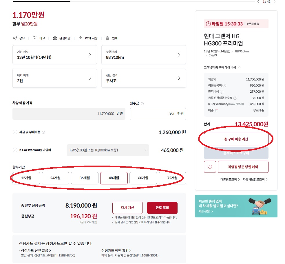 밑으로 계속 더 내리면 아래 사진과 같은 원하는 할부조건을 클릭하거나 해서 여러 가격을 비교해 볼 수 있습니다.