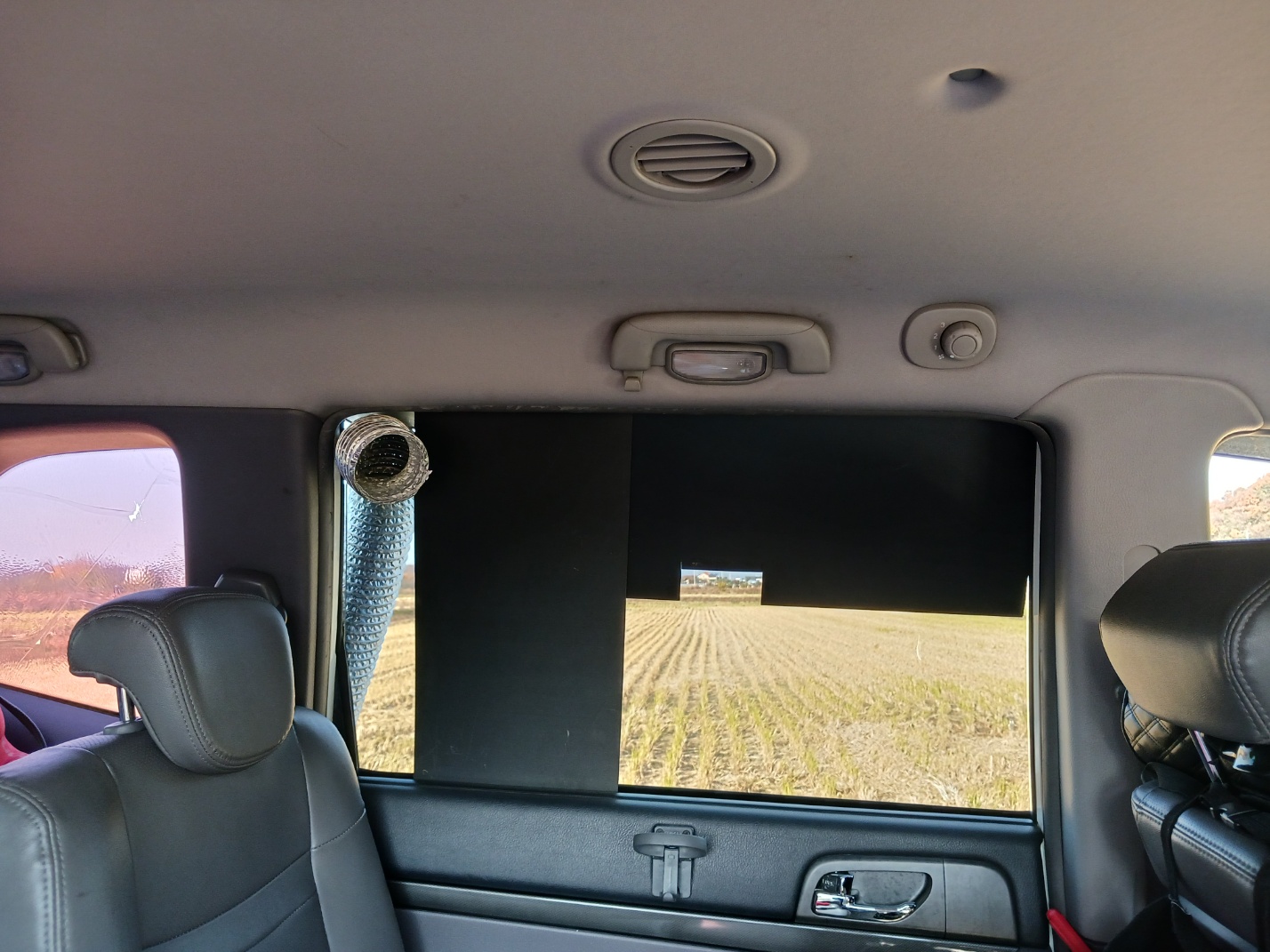 겨울철 캠핑, 낚시 취침시 침낭에 들어가면 몸은 따뜻한데, 코가 시려서 계속 잠을 뒤척이게 됩니다. 그래서 무시동히터를 켜고 자면 해결되는데, 이게 무시동히터 매립 설치 후 차는 계속 진동을 일으키며 달리니까 결속 부위들이 풀려서 배기가스 누출이 있을 수도 있습니다. 그러면 큰 사고로 이어질 수도 있기에 매립 설치는 계속 망설여지게 만듭니다. 하지만, 매립이 아닌 경우 눈, 비가 올 시 수분이 전기장치에 접촉되면 고장으로 이어질 수 있기에 사용을 할 수가 없습니다. 그래서 고민 끝에 생각해 낸 방법은 아래의 사진과 같습니다. 아직 비나 눈이 올 때 사용해 보진 않았지만 비바람이 거세게 몰아치지만 안는다면 괜찮을 거 같습니다.