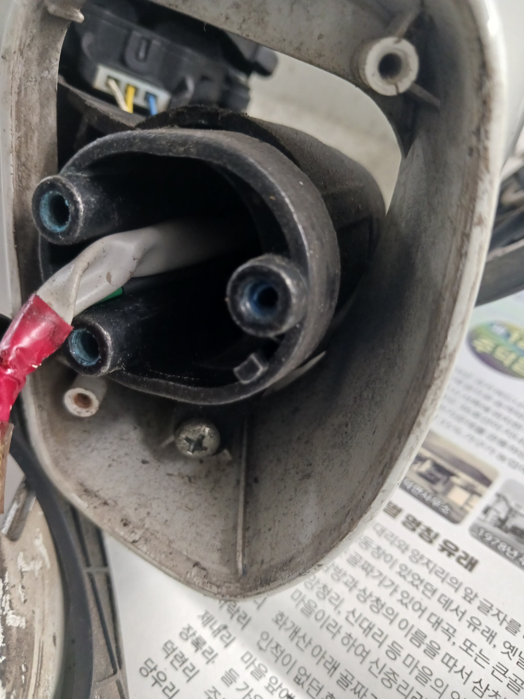 기어박를 열어보니 다행히도 구매한 기어가 부러져 있습니다. 고장 난 기어를 핀셋으로 제거하고, 새로 산 기어를 넣어줍니다. 근데, 딱 맞게 쑥 안 들어가는 느낌이었지만 그냥 뚜껑을 닫았습니다. 안되면, 손으로 접었다 폈다 할 생각이었습니다. 분해의 역순으로 사진을 보면서 다시 조립하고 긴장된 마음으로 시동을 걸었다가 꺼봅니다. 두둥 사이드미러가 작동합니다. 순간 뿌듯함이 밀려옵니다. 이상 코란도투리스모 사이드미러 기어 수리 후기입니다.