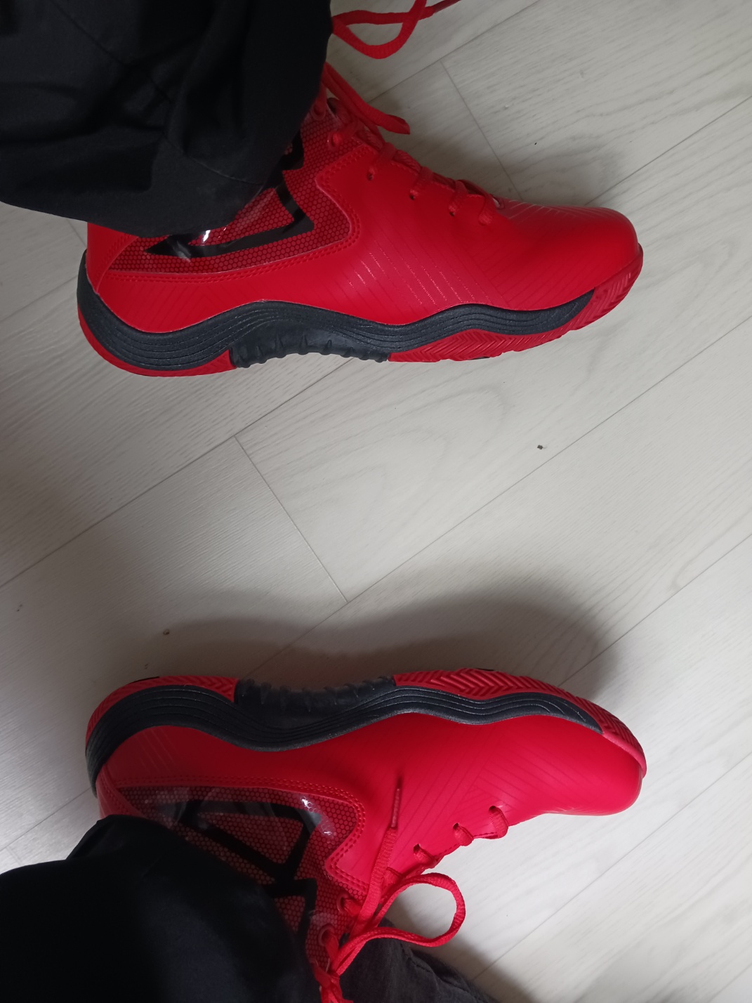 우선 디자인은 괜찮습니다. 선명한 빨간색과 블랙의 조합이 눈에 띄고, 코트에서 확실히 존재감을 드러냅니다. 하지만 이뿐만 아니라 기능적인 면에서의 실망이 컸습니다. 신어보니 착화감이 좋지 않았고, 발목 지지력이 부족한 느낌이었습니다. 농구화는 빠른 움직임과 점프에 적합해야 하는데, 이 제품은 그 점에서 부족함을 느꼈습니다.