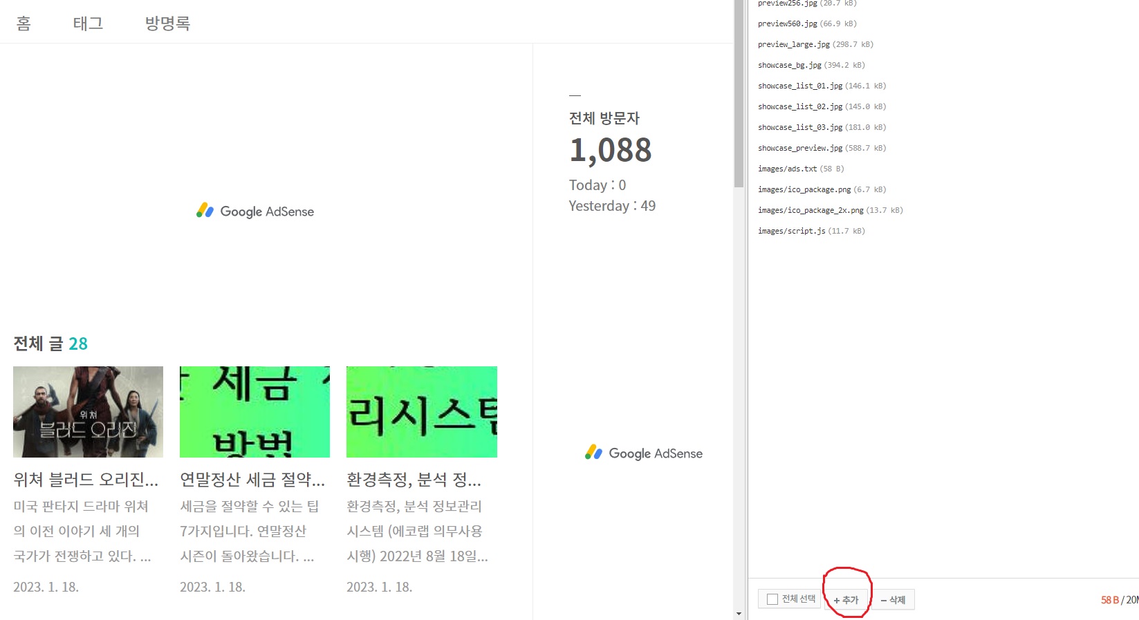 오른쪽 아래 추가 버튼을 누른 후 처음에 다운로드 받은 ads,txt 파일을 추가한다.