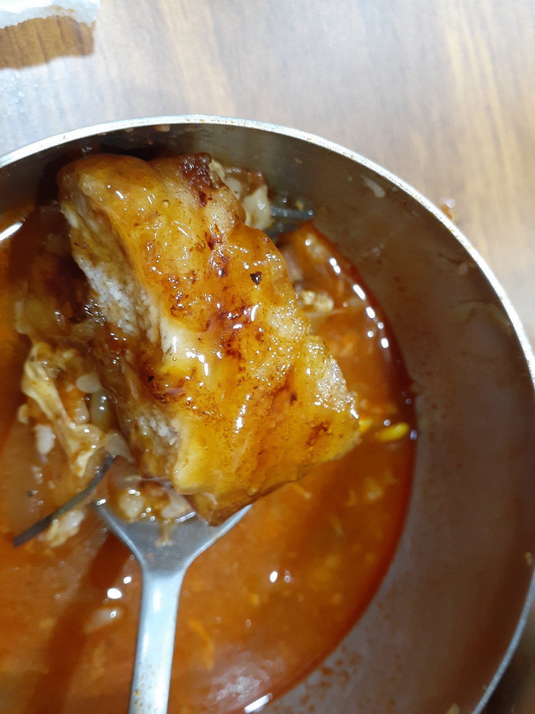 육개장에 들어있는 소고기도 얇게 쭉쭉 찢어진 소고기가 아니고, 안동장터 국밥식으로 두툼한 소고기가 들어있습니다. 소고기가 두툼한 만큼 육개장 또한 씹는 맛이 좋습니다. 육개장이 오늘은 살짝 짠 느낌이 있었지만 필자는 원래 짜게 먹기 때문에 맛있었습니다. 탕수육과 같이 먹는 바람에 육개장 바닥을 보진 못했습니다.